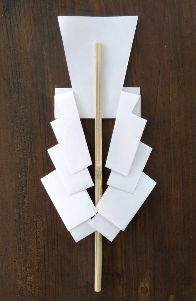 Around the Heian era (from 794 to 1185 AD), the Japanese started to stick those high-quality (folded) clothes at the tip of the stick to raise them close to the Gods.