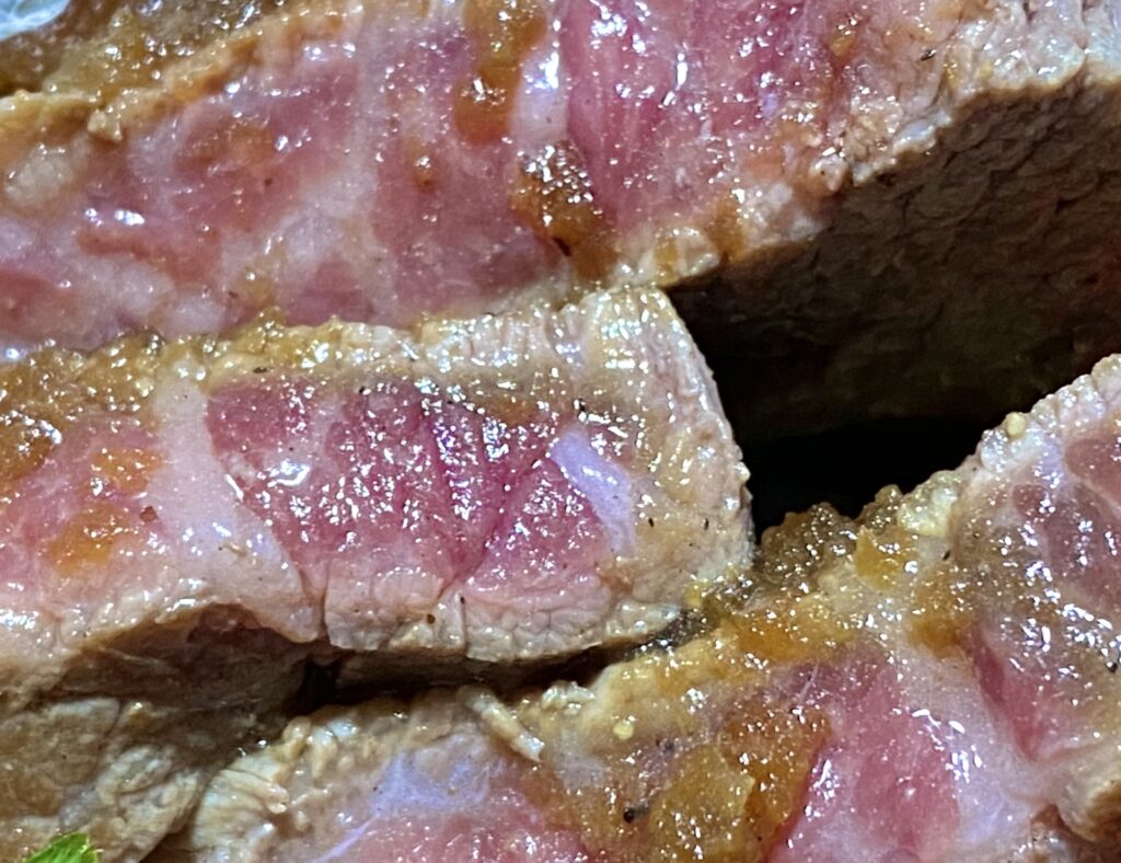 Please imagine the taste of steak burned with that charcoal. The surface is well done, while the inside is juicy medium. It must be yummy.