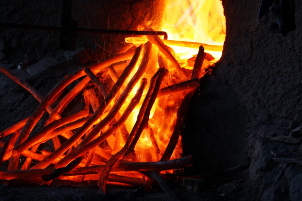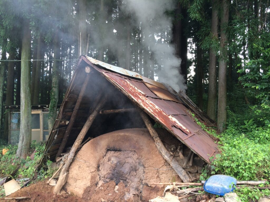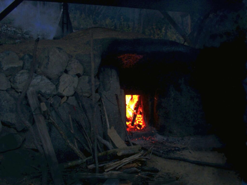 It gets ready for the creation of Bintyoutan. They cause a big fire at the blocked entrance. Indeed. They steam the woods in the kiln. The temperature is crazy. It will reach around 1000th and 1300th!. However, they have to keep their eyes on the inside of the kiln.