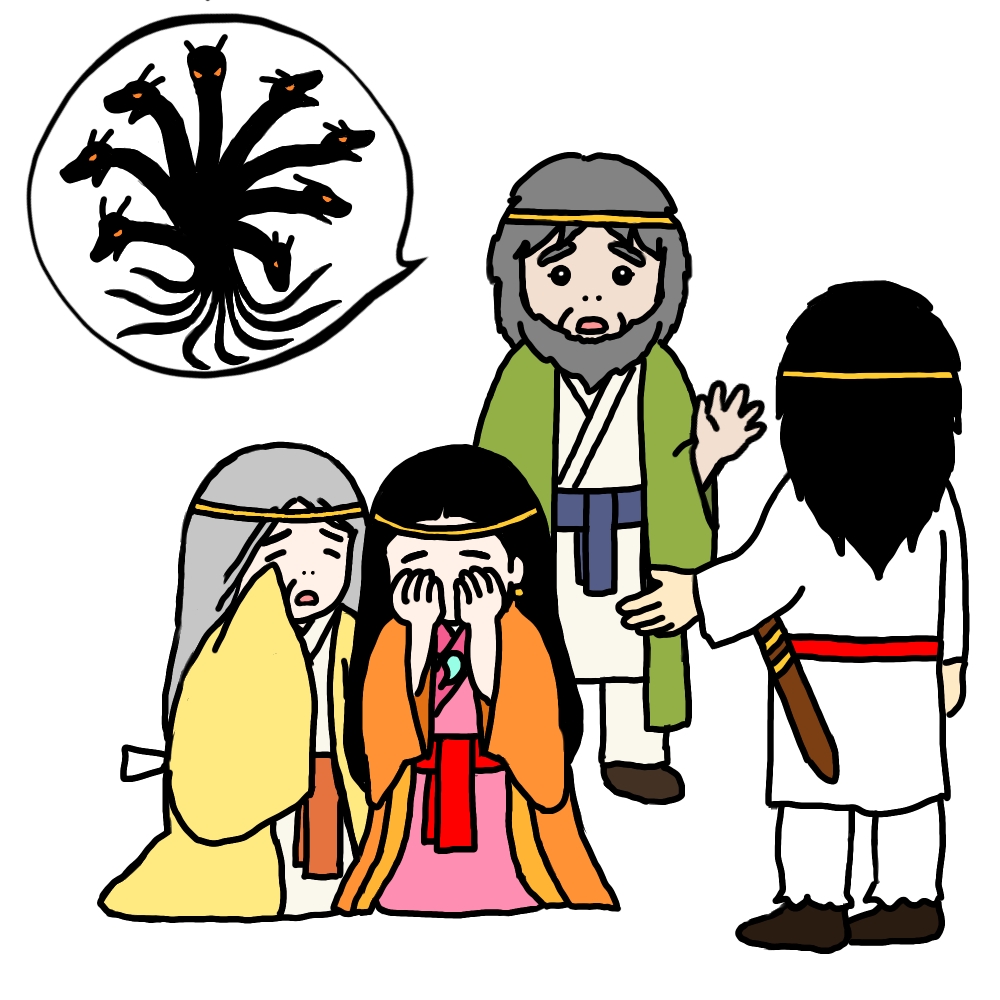At the time he evacuated there, the village was in big trouble. It was from the monster of the serpent Yamata no Orochi. It ordered the villager to give him a beautiful girl every year. Yes, it was a sacrifice.